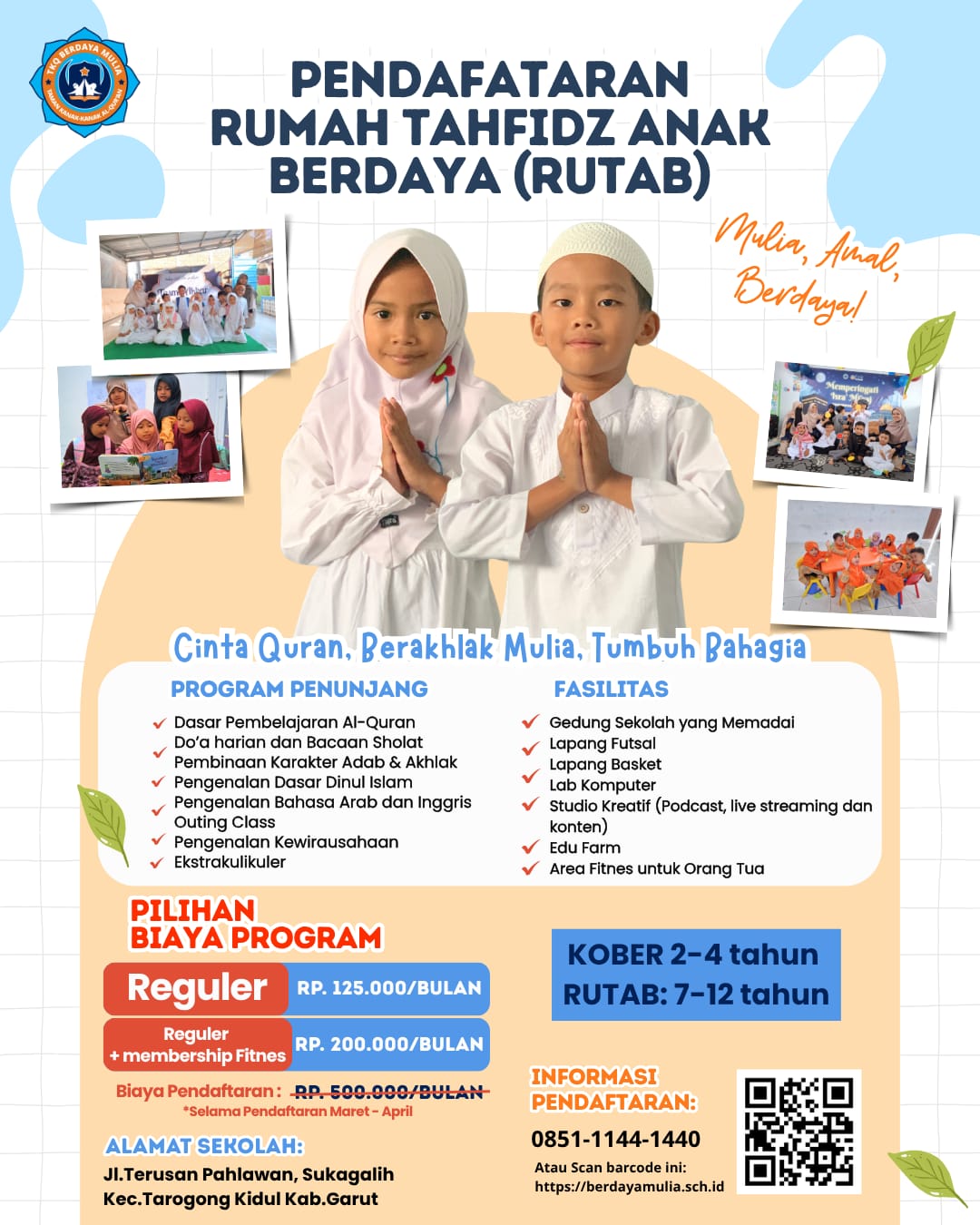Biaya pendidikan RUTAB sangat terjangkau dan disesuaikan dengan fasilitas yang diberikan. Untuk informasi detail biaya, silakan hubungi tim kami melalui WhatsApp.